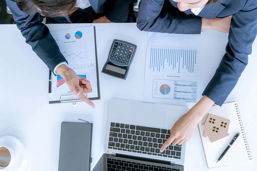 Hand of Business people calculating interest, taxes and profits